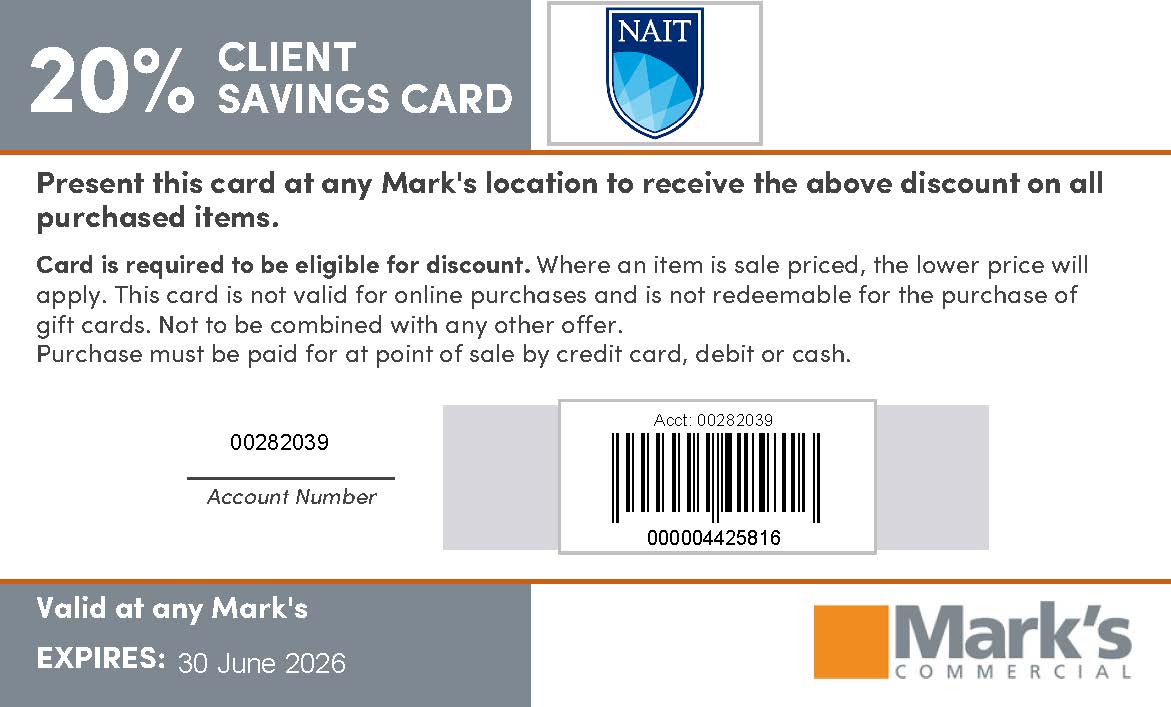 We aim to offer students great deals while helping support our local businesses. If your business would like to show off your student perks & discounts here on this page, please do not hesitate to contact us at asknaitsa@nait.ca to see if you fit our criteria.